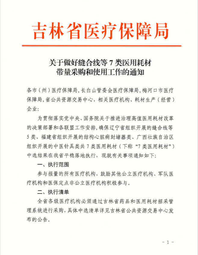 关于做好缝合线等7类医用耗材带量采购和使用工作的通知(非官方)