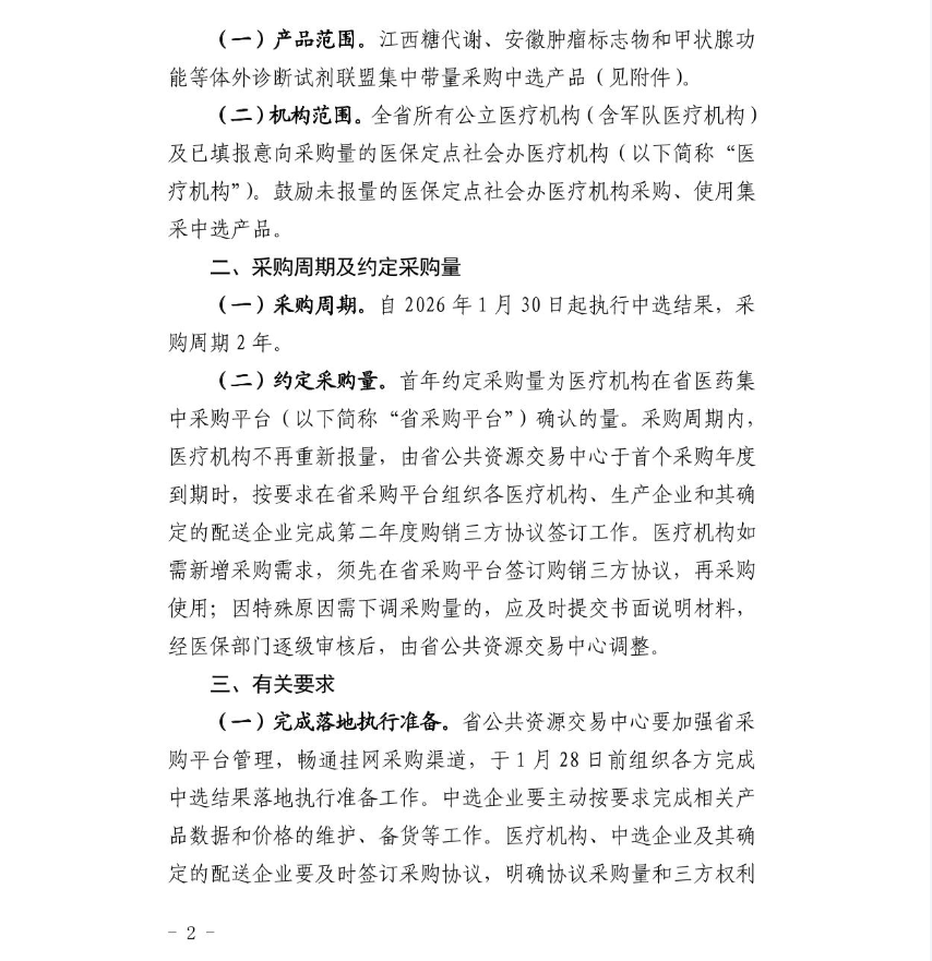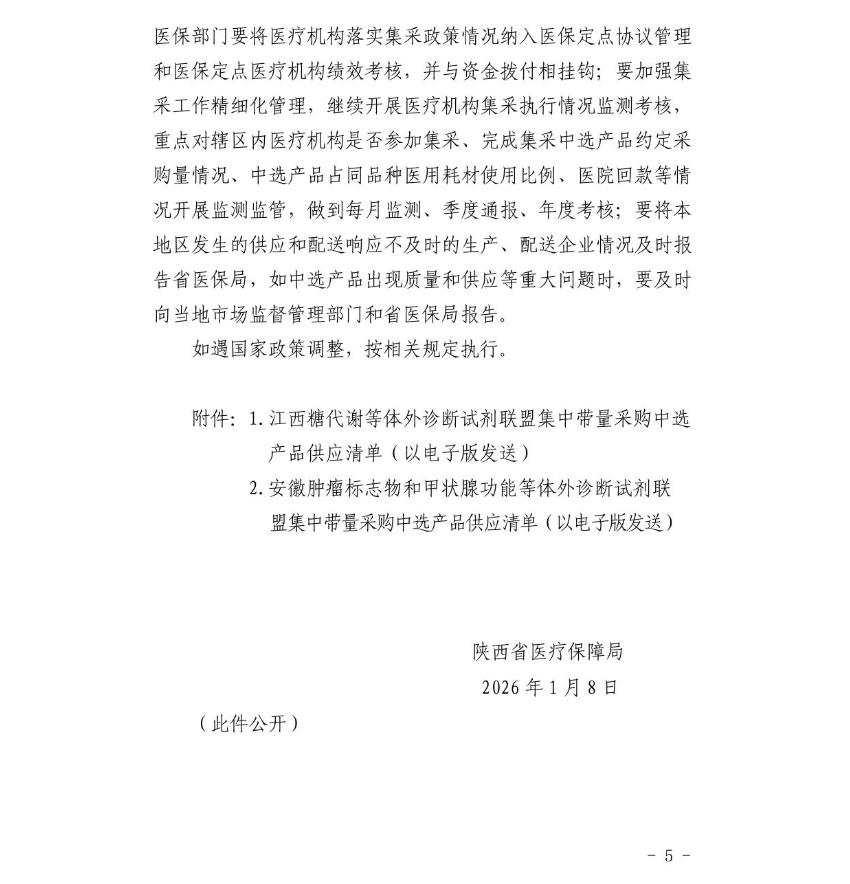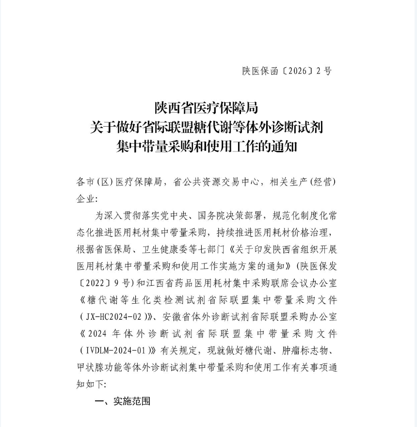 2026年陕西省关于江西糖代谢等体外诊断试剂集采中选供应清