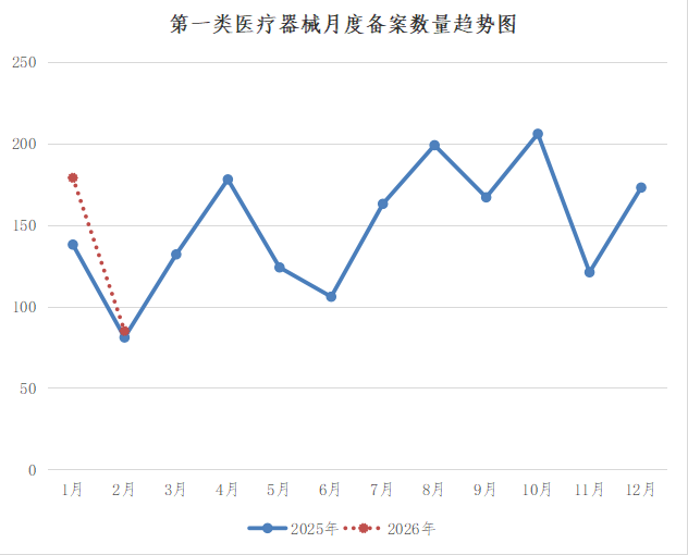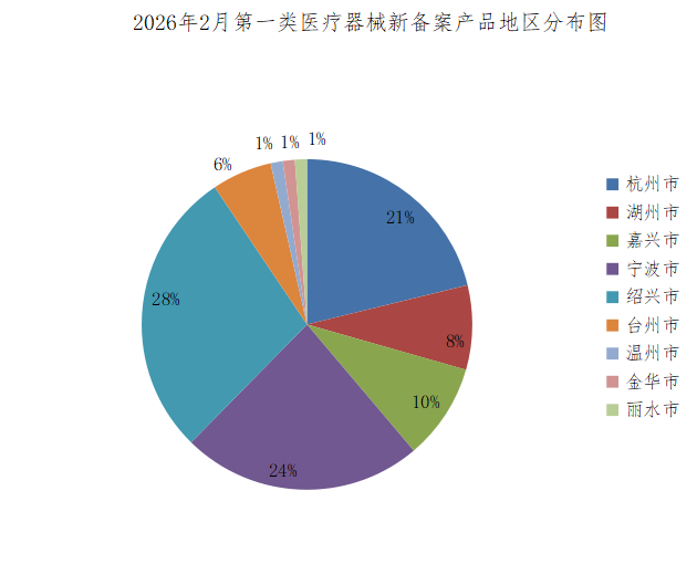 2026年2月,浙江省内各市市场监督管理局共新备案第一类医疗器械产品85个,其中有源类5个,无源类31个,体外诊断试剂49个(具体产品见附件)。