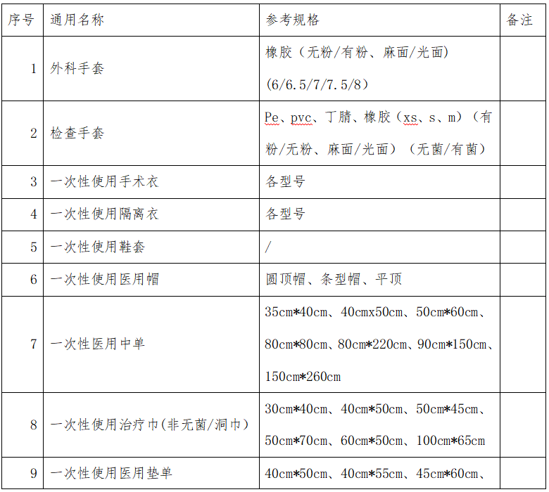 备注:1.规格参数仅供参考,企业可新增常用规格报名。最终入围议价的规格与品牌,以现场调研结果为准。
