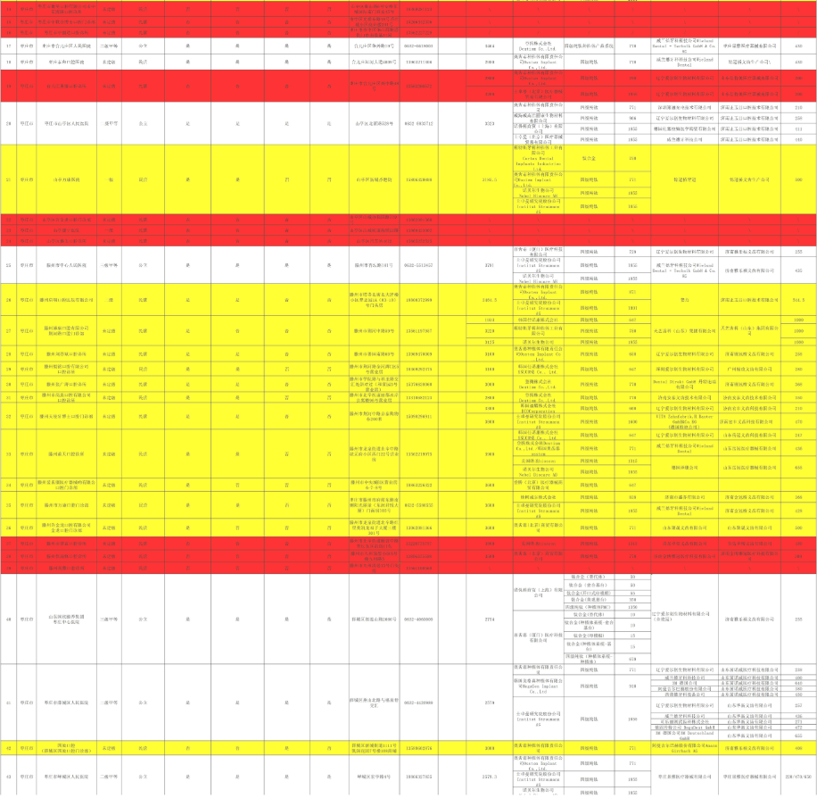根据山东省医疗保障局《关于更新口腔种植收费专项治理信息的函》要求,现将《口腔种植收费专项治理信息表》内容更新。医疗机构排序按参与专项治理措施数量排名,参与治理措施多的在前,对不接受一至四项价格治理措施的医疗机构,根据不同情形标记不同颜色提示价格风险,蓝色(一项)、黄色(二至三项)、红色(四项)。