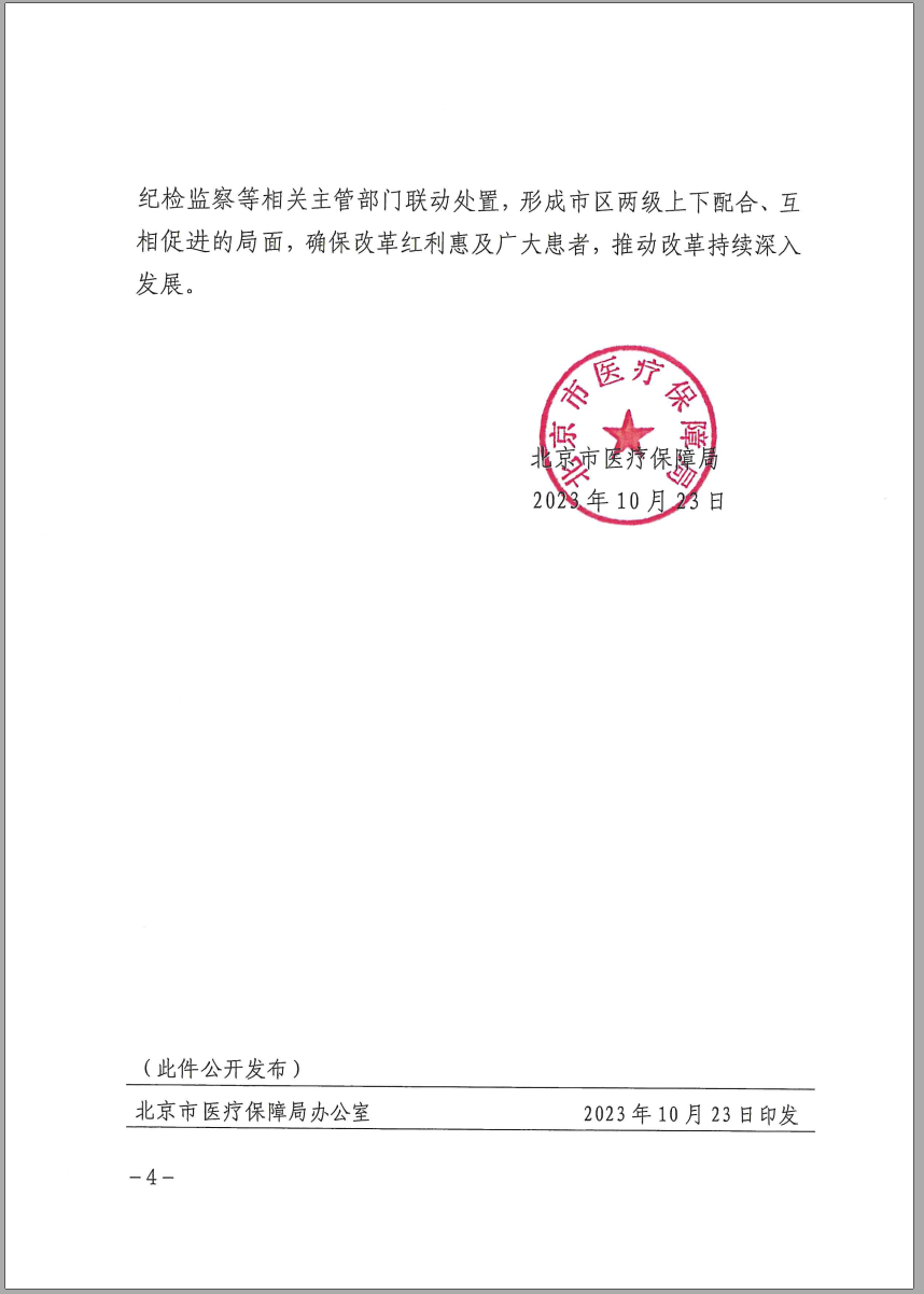 (三)强化日常监测和监督指导管理。各区医疗保障部门应 按要求完善日常监测机制,全面掌握辖区内各医疗机构采购情况、回款情况和医保政策执行情况,加强与卫生健康、市场监管、纪检监察等相关主管部门联动处置,形成市区两级上下配合、互 相促进的局面,确保改革红利惠及广大患者,推动改革持续深入发展。