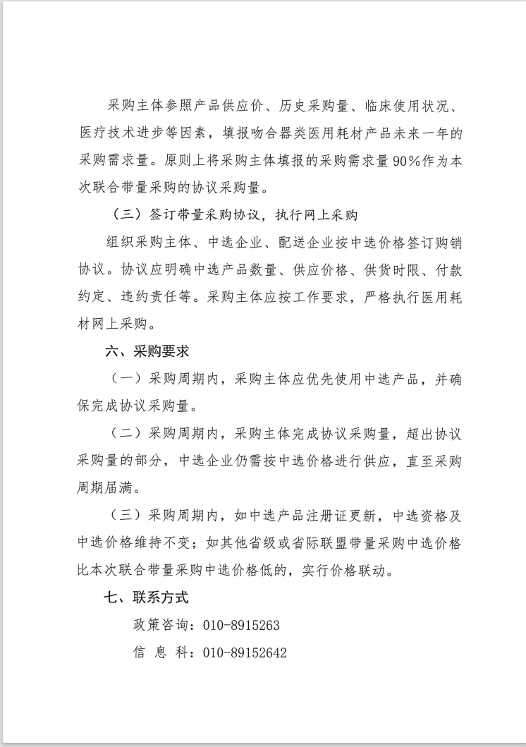 采购主体参照产品供应价、历史采购量、临床使用状况、 医疗技术进步等因素,填报吻合器类医用耗材产品未来一年的 采购需求量。原则上将采购主体填报的采购需求量90%作为本次联合带量采购的协议采购量。