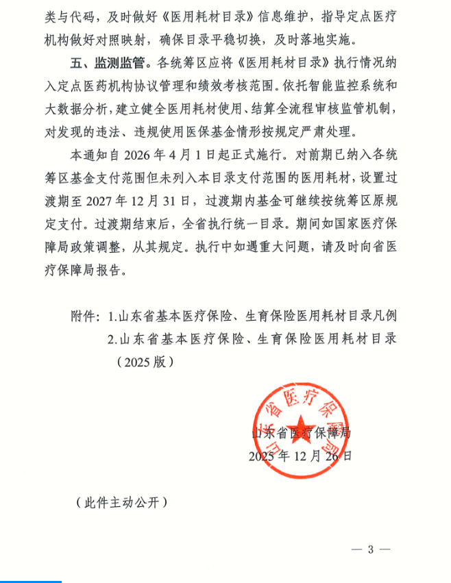 关于印发《山东省基本医疗保险、生育保险医用耗材目录(2025版)》的通知(非官方)