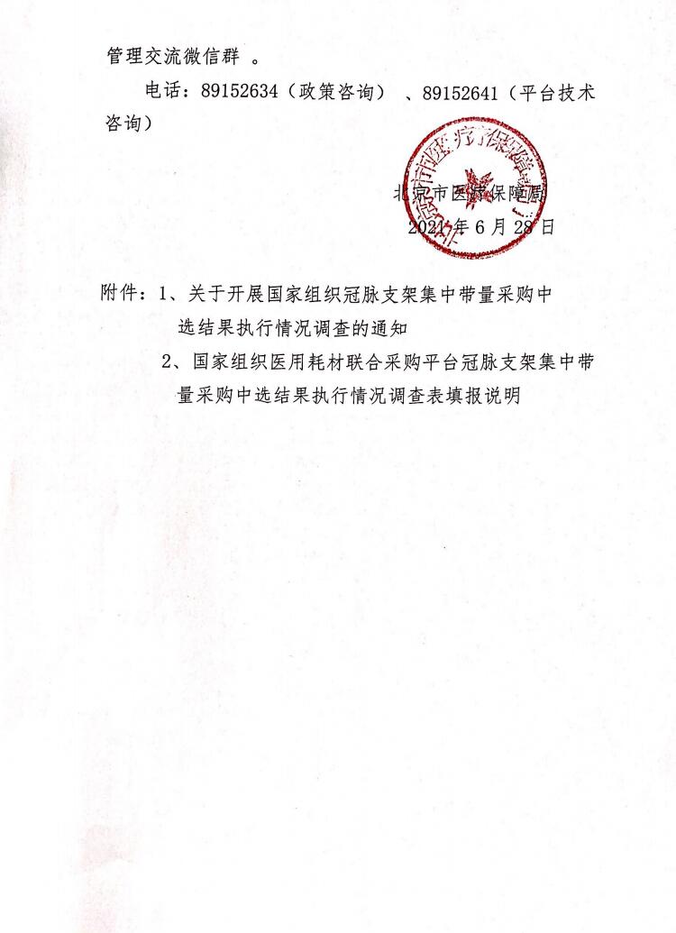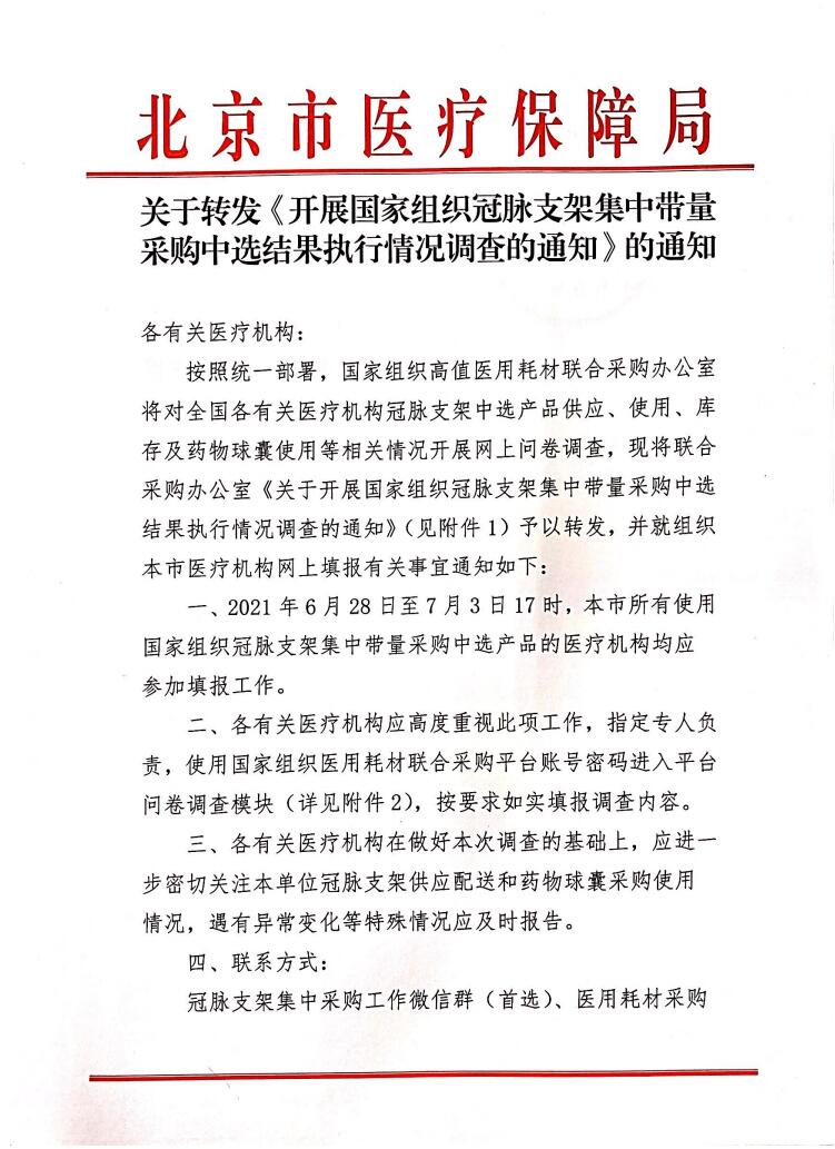 关于转发《开展国家组织冠脉支架集中带量采购中选结果执行情况调查的通知》的通知