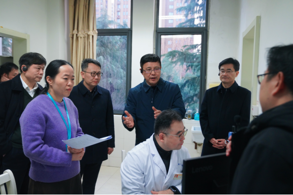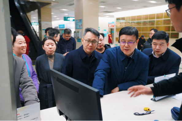 2026年1月5日,省医保局党组书记、局长吴振宇赴合肥市调研医疗保障工作,结合学习宣传贯彻党的二十届四中全会精神,实地考察国家人工智能应用中试基地项目、合肥市医保中心经办服务窗口、合肥市第二人民医院,了解医保个人健康云建设、基层医保经办服务、智能监管平台应用、信用就医等工作情况,座谈听取对医保工作的意见建议。合肥市政府副市长何逢阳参加调研。