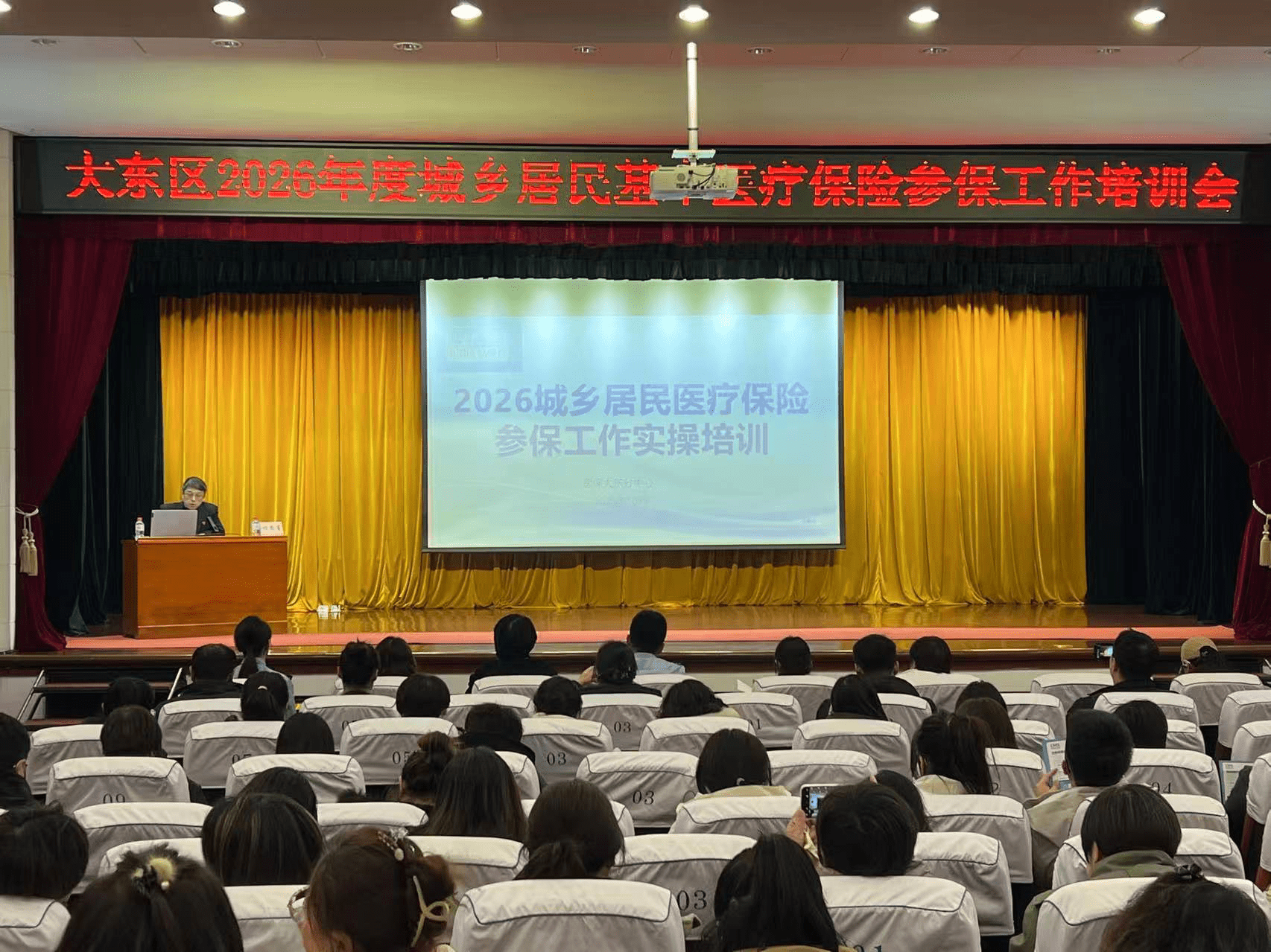 为贯彻落实国家、省、市医保相关工作要求,全力推进2026年度城乡居民基本医疗保险参保工作。10月22日下午,大东区组织召开2026年度城乡居民基本医疗保险参保工作培训会。医保大东分局、医保大东分中心、区税务局、各街道社区相关负责同志共计180余人参加了会议。