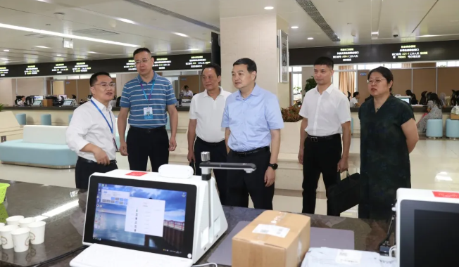 李勇强实地查看迁入新址窗口人员工作状态、精神面貌,了解业务办理、工作环境情况,听取工作意见和建议。对政务服务窗口在优化政务服务、提升行政效能方面所取得的成绩给予肯定。