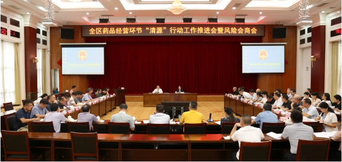 会上各市市场监管局及各检查分局对“清源”行动工作和风险排查工作进行了交流和研讨。柳州、钦州、北海、贵港、河池市市场监管局、南宁检查分局作经验交流发言。自治区药监局相关处室、直属单位和各检查分局负责同志,各市市场监管局分管领导及业务负责人共50余人参加会议。