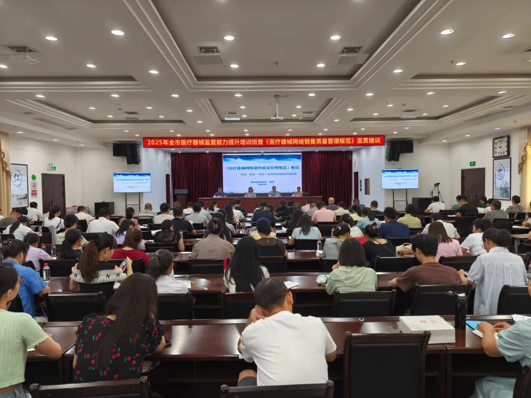 为强化医疗器械网络销售和使用环节质量监管,提升全市监管队伍专业能力,9月19日,赣州市市场监督管理局举办2025年全市医疗器械监管能力培训班暨《医疗器械网络销售质量管理规范》宣贯培训。省药监局医疗器械监管处三级调研员刘春祥应邀作专题授课。市市场监管局医疗器械监管相关负责同志,各县(市、区)医疗器械监管骨干,重点医疗器械网络销售企业、使用单位代表等350余人参训。此次培训紧扣当前医疗器械网络销售监管需求,聚焦《规范》核心要求,围绕网络销售企业质量管理体系、页面信息公示、销售记录留存以及售后服务等关键环节展开政策解读,并结合典型案例剖析经营未经注册医疗器械、虚假宣传等违法行为的法律后果,为参训人员明确监管重点与合规边界。培训还解读了《赣州市医疗机构医疗器械使用质量管理指南》,对医疗器械使用环节管理的具体要求进行了深入讲解。