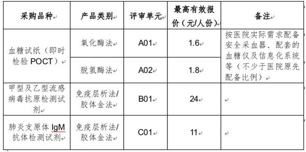 本次组团采购的产品为血糖试纸(即时检验POCT)、甲型及乙型流感病毒抗原检测试剂、肺炎支原体IgM抗体检测试剂,具体见下表。