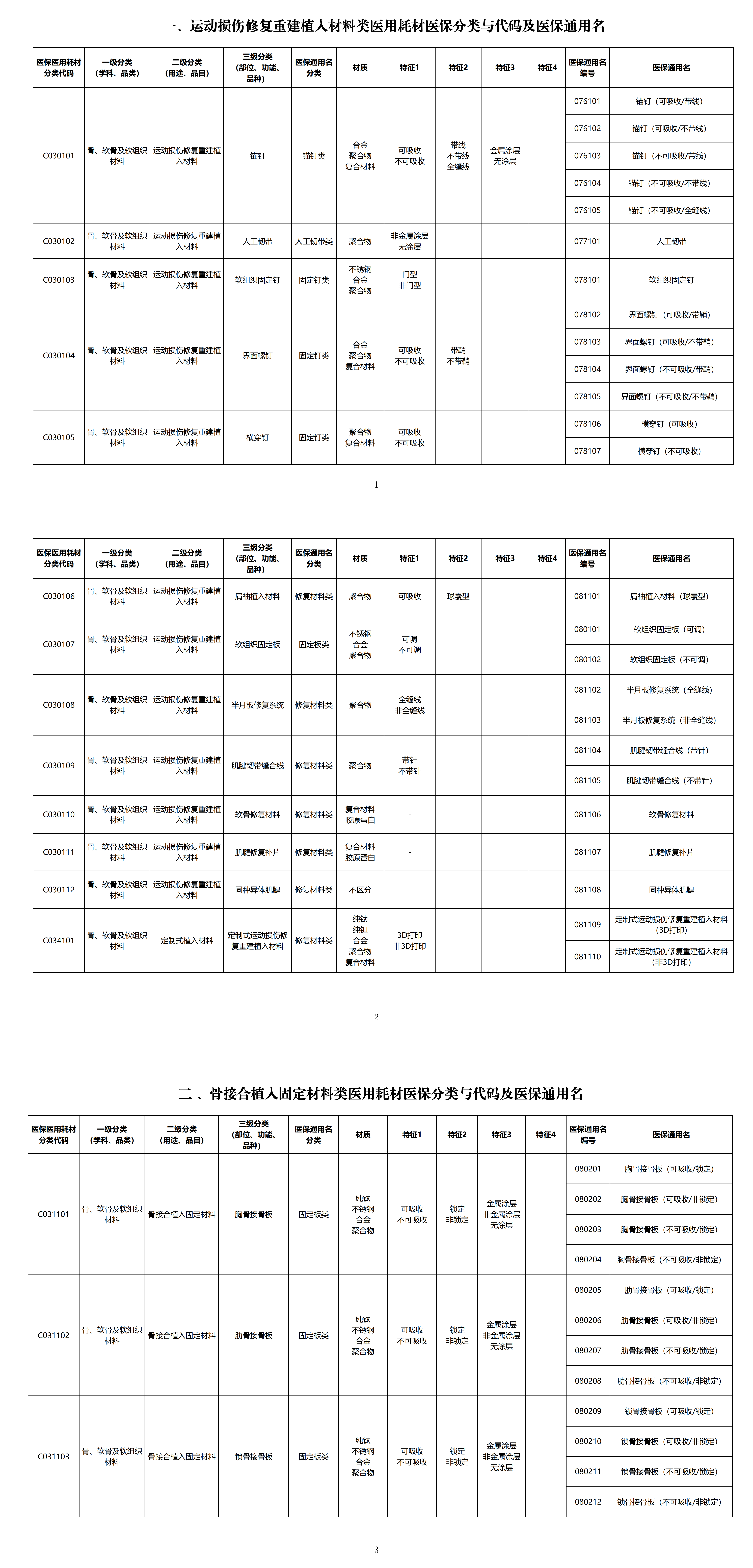 国家医保局发布《骨、软骨及软组织植入类医用耗材医保分类与代码及医保通用名》
