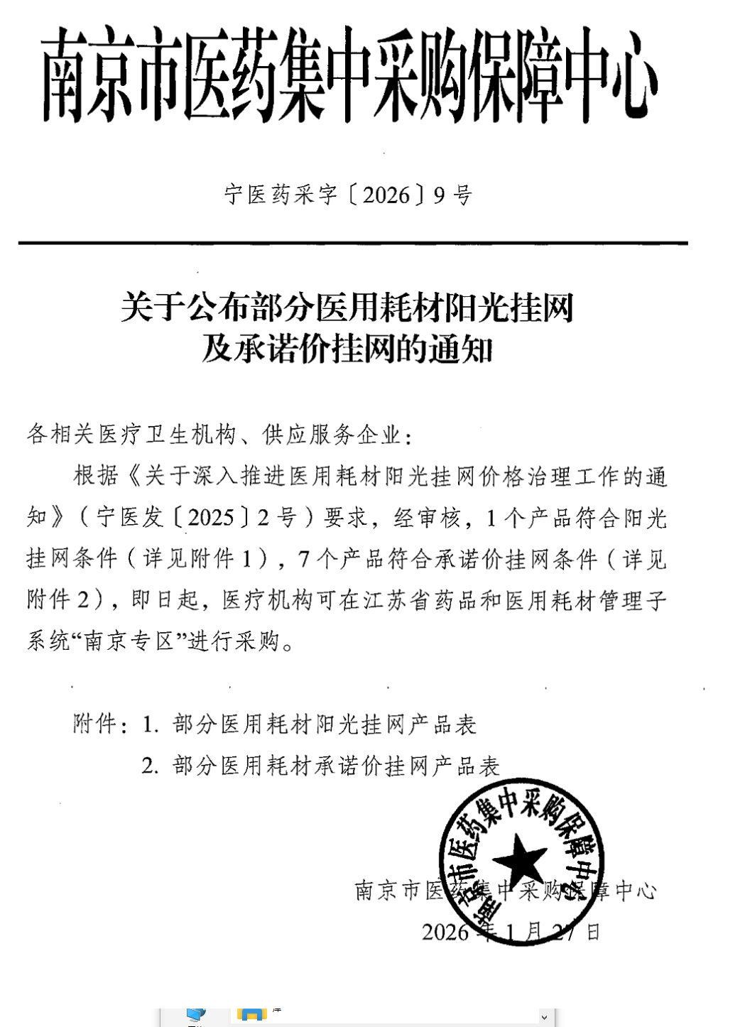 宁医药采字〔2026〕9号—关于公布部分医用耗材阳光挂网及承诺价挂网的通知