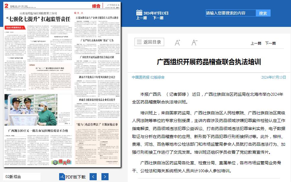 近日,广西壮族自治区药监局在北海市举办2024年全区药品稽查联合执法培训班。