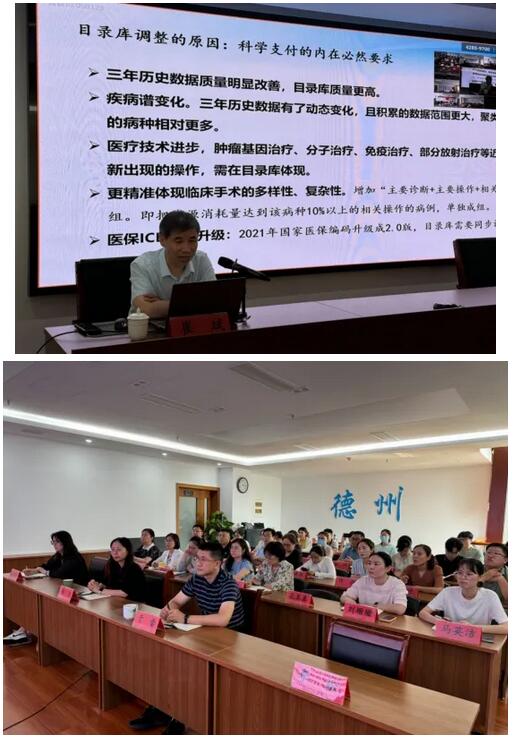 崔斌教授以“按病种分值付费技术规范与实施”为题,深入阐述了目录库的分组逻辑优化、结构分析及技术规范实施关键要素,从全国和山东省的角度,对德州市医保基金运行和按病种分值付费改革情况进行了分析指导,并为德州市的医保支付方式改革指点迷津。