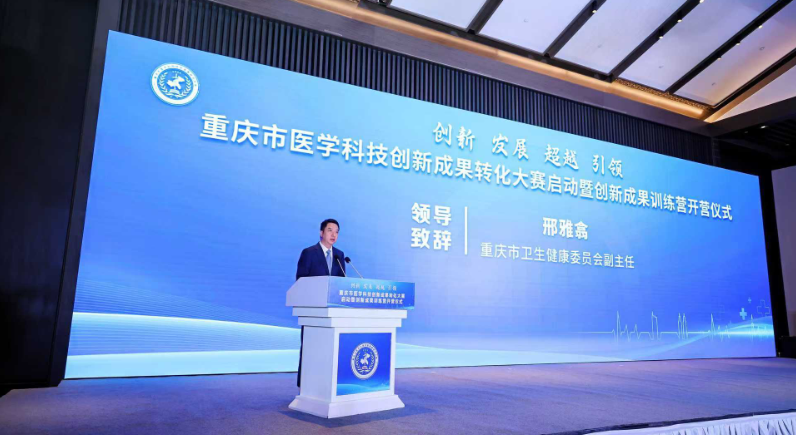 10月28日,重庆市医学科技创新成果转化大赛启动暨创新成果训练营开营仪式在山城国际会议中心举行。市卫生健康委副主任邢雅翕,西部科学城重庆高新区管委会二级巡视员张红平,市药品监督局安全总监潘光伟出席会议并致辞,重医附一院院长罗勇、华森制药集团董事长游洪涛分别作为医院代表和企业代表发言,市卫生健康委二级巡视员王世纯主持开营仪式。