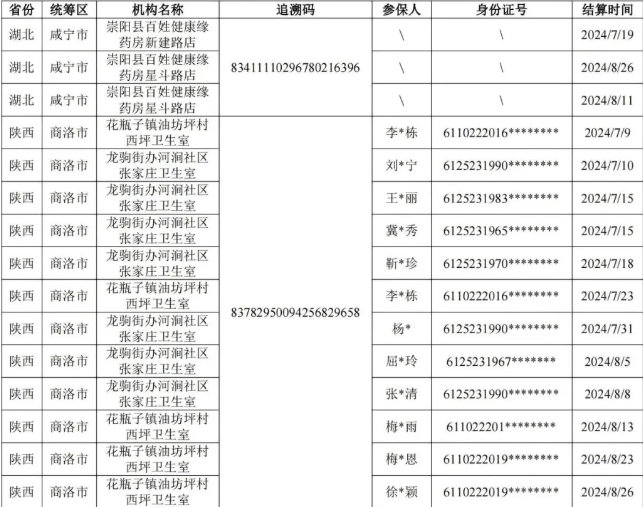 (二)疑似回流药或用同一药品盗刷不同参保人医保卡(同一药品追溯码在不同定点医药机构发生结算,且时间跨度较大),如下表: