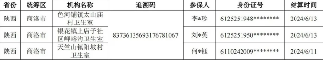 (三)疑似假药(同一药品追溯码在不同定点医药机构发生结算,且时间相近),如下表: