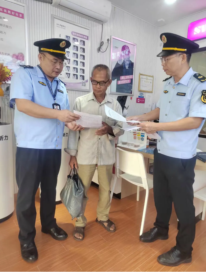 执法人员开展助听类医疗器械有关知识的宣传,引导老年人正确购买助听类医疗器械