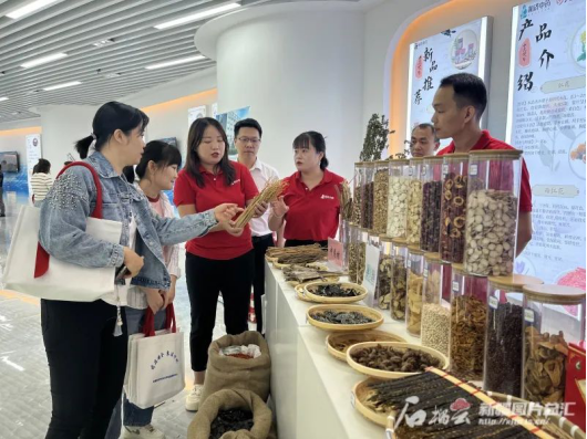 9月2日,2024年自治区药品安全宣传周活动启动。活动现场,药材生产企业工作人员向参观者展示各种中药材。