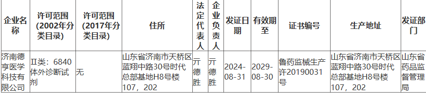 根据国务院《医疗器械监督管理条例》、国家食品药品监督管理总局《医疗器械生产监督管理办法》和我局《关于实施〈医疗器械生产监督管理办法〉有关问题的通知》的规定,经我局审查,拟办企业济南德亨医学科技有限公司符合规定要求,准予换发《医疗器械生产许可证》。 特此公告。
