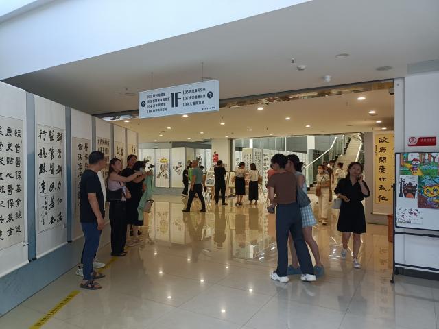 一笔书我心,一划展神?。6月12日,2024年湖北省医保基金监管书画展在宜昌市伍家岗区图书馆开展了,当日来自伍家岗区医药机构的200余名医生师护士、党员干部齐聚吾家书房,现场观摩展览作品。