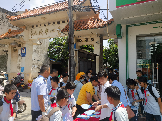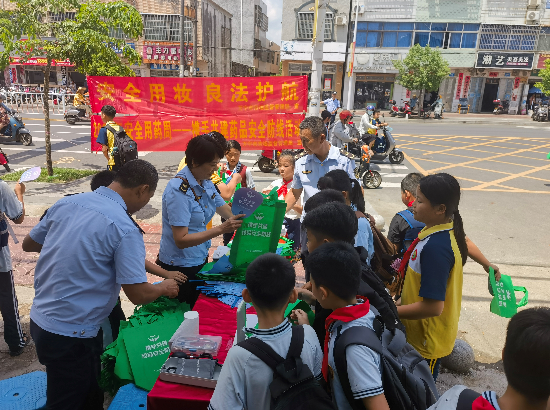 2024年是《中华人民共和国药品管理法》颁布40周年,为进一步普及药品安全知识,培养学生家长安全用药意识,筑牢校园用药安全防线,近日,万宁市市场监督管理局在万宁市大茂中心学校周边组织开展以“药品安全?良法护航”为主题的2024年药品安全宣传周宣传活动。