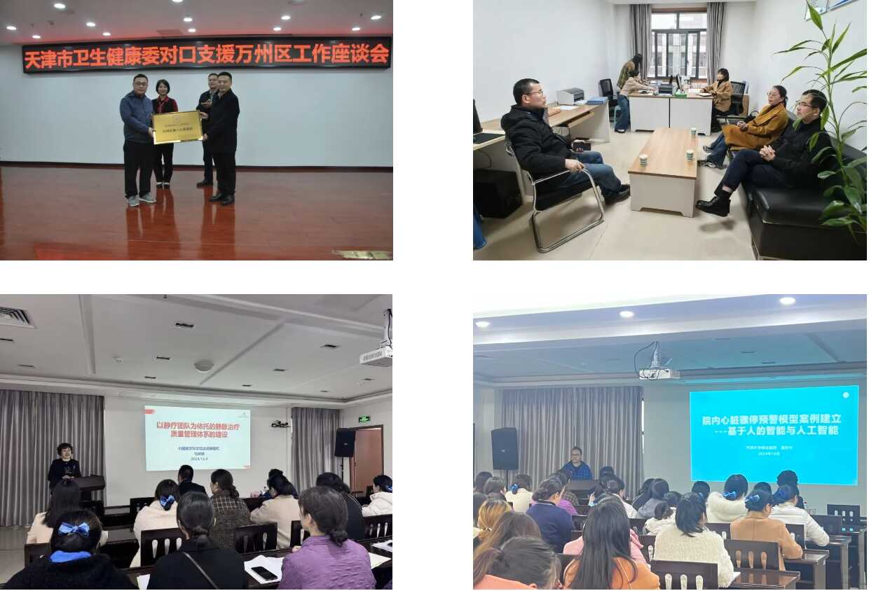 期间,市卫生健康委一行实地考察调研万州区第一人民医院,详细了解了医疗援万工作情况,慰问了援万队员,并为万州区第一人民医院国家胸痛中心(基层版)进行授牌。组织天津市护理专家夏欣华主任、马新娟主任、医院管理专家邹颖主任、燕朋波主任分别开展天津市“十大护理领军人物”西部行(万州站)提升护理服务能力培训活动和医院管理能力提升培训活动。