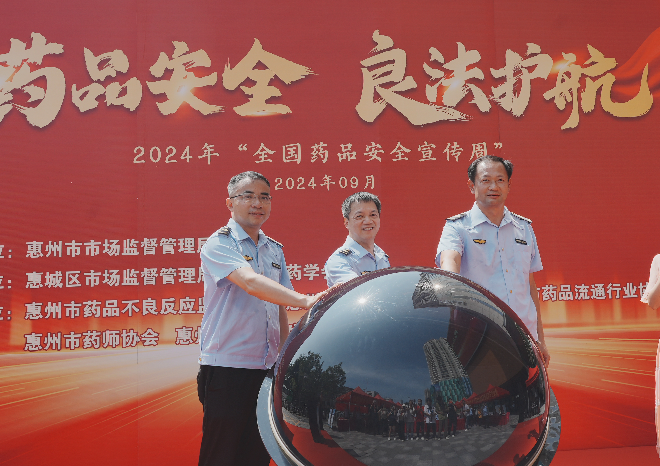 此次活动的启动仪式,于9月3日上午在河南岸港惠新天地东广场开展。惠州市市场监督管理局党组书记、局长袁贵平,药品安全总监钟喜源;惠城区市场监督管理局党组书记、局长朱斯文等同志;以及市药学会、医疗器械行业、药品流通行业、药师和化妆品生产等协会代表参加本次启动仪式。