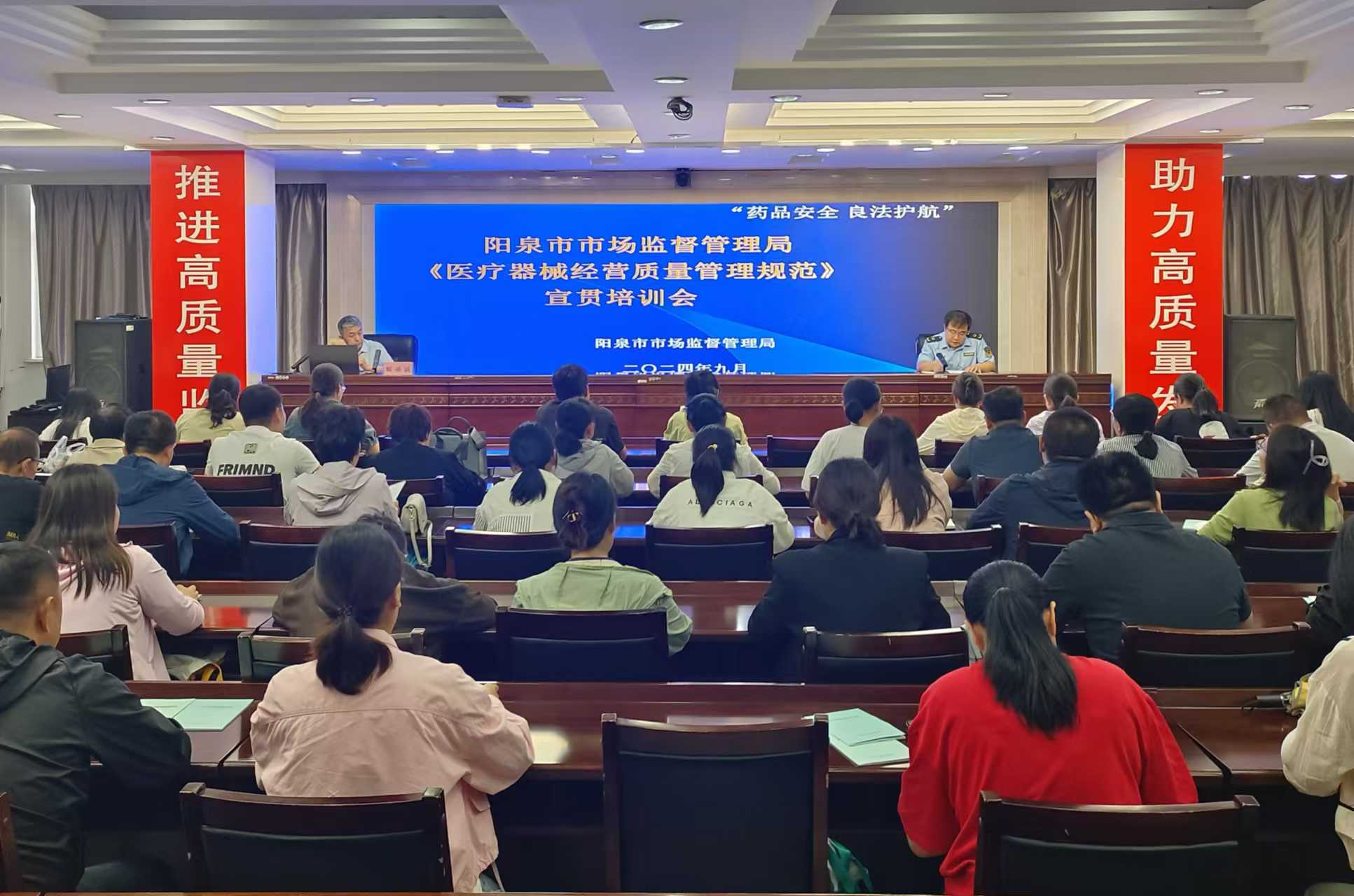 为进一步加强医疗器械质量安全监管,规范医疗器械企业经营行为,贯彻实施新修订的《医疗器械经营质量管理规范》,阳泉市市场监督管理局结合2024年“全国药品安全宣传周”活动要求,近日组织开展了《医疗器械经营质量管理规范》学习培训,我市医疗器械经营企业、生产企业、使用单位及市、县(区)监管人员100余人员参加了此次培训。