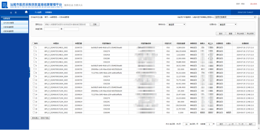 药品、医用耗材采购涉及资金量大、利益链条长,全面推行医保基金直接结算工作的难度较大。对此,汕尾市医保局采取先易后难、以点破面的方法,突出“三个创新”,探索出一条推行直接结算新路径。一是突出在实施范围上创新,以我市创建全国“两病”门诊用药保障专项行动示范城市为契机,首批遴选集采、国谈“两病”通用药品34个(共55个品规)为试行,组织全市100家定点医疗机构和30家开通“双通道”的定点药店组成“联盟”,在广州平台建立的“汕尾两病专区”进行医药货款直接结算,为下来逐步扩大实施范围提供实践经验。二是突出在货款支付上创新,组织医药机构、医保中心、采购平台、银行等单位签订“四方”协议,明确各自权利义务,尤其是明确医药机构作为采购和结算主体,按照原采购模式,在其确认收货后委托市医保中心每月代支付货款并在其指定账户中扣回月结算款,实现医保基金向医药企业及时支付货款。三是突出在结算流程上创新,开发建设银联结算平台,打通与金融、财务、采购、结算等信息系统之间的壁垒,及时实现代付、代扣、对账、查询、在线结算等业务,并与采购平台实现数据互联互通,全程留痕、全程监管。按照“医院下单、企业配送、医保审核、基金买单”思路,制定数据上传、票据审核、对账复核、货款拨付等结算流程,并对每个环节的时间节点提出明确要求,有效压缩流通环节、缩短支付链条,确保结算数据、拨付资金精准安全。