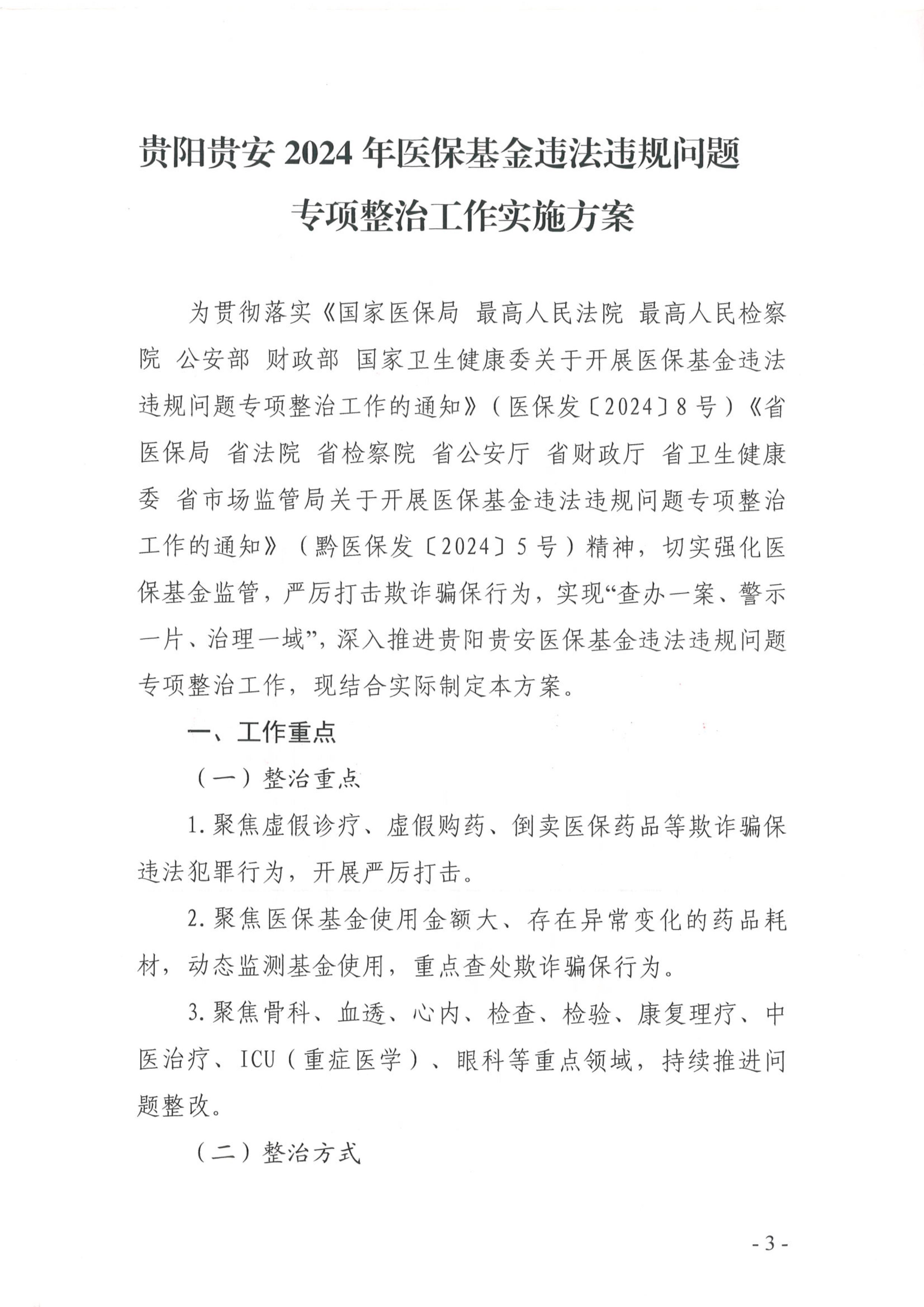 现将《贵阳贵安2024年医保基金违法违规问题专项整治工作实施方案》印发给你们,请遵照执行。