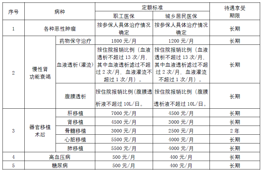 门诊慢性特殊疾病待遇实行定额管理。参保人员享受两种门诊慢性特殊疾病待遇的,城镇从业人员在最高一种病种定额标准基础上增加200元/月,城乡居民在最高一种病种定额标准基础上增加100元/月。其中一种是恶性肿瘤的,各按相应病种定额标准执行。