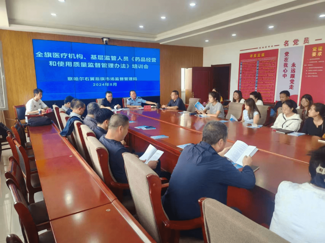 为宣传贯彻2024年1月1日起施行的《药品经营和使用质量监督管理办法》,加强全旗医疗机构及其他药品使用单位药品质量安全管理,提高药品使用单位人员业务能力、规范药品使用行为,强化药品使用单位法律意识、责任意识,8月20日下午,察哈尔右翼后旗市场监督管理局举办医疗机构药品管理从业人员宣贯培训会议,特别邀请了乌兰察布市市场监督管理局药品化妆品监管科业务骨干为本次培训进行专业宣讲,辖区内医院、卫生院、卫生室、个体诊所等药品使用单位20余人参加了培训会议。