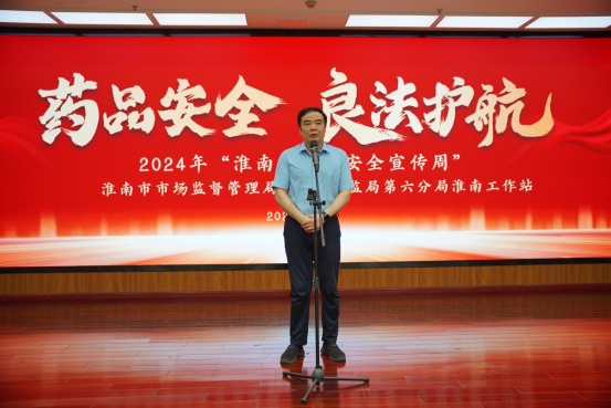 (市药安办主任、市市场监管局党组书记、局长李宝云宣布“2024年淮南市药品安全宣传周活动启动”)