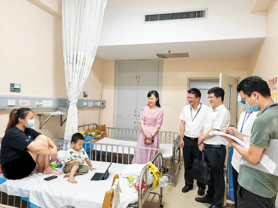图1?市医保局局长黄文(左三)率队在北海市人民医院检查“挂床住院”时走访病房,了解群众医保报销待遇等情况