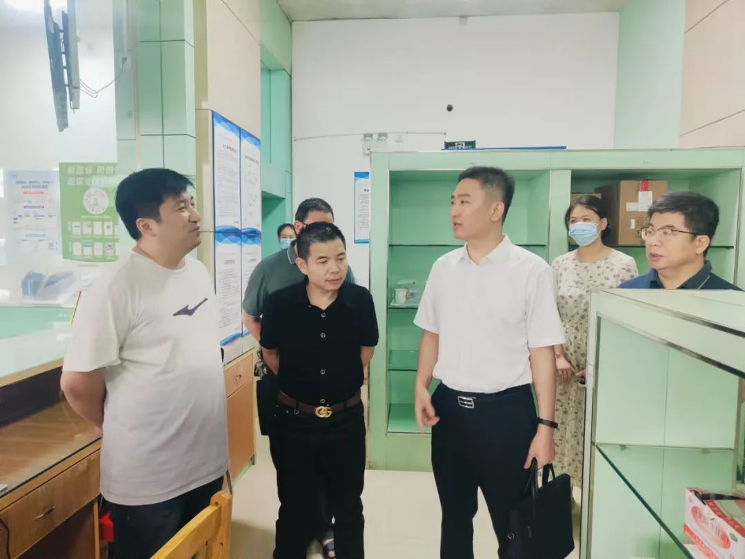 图2?市医保局党组书记、副局长欧长珑(前排左三)在合浦县实地督导药品、耗材追溯码信息采集和“挂床住院”专项检查工作