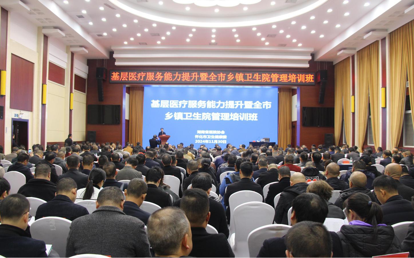 11月30日,怀化市卫生健康委联合湖南省医院协会举办全市基层医疗服务能力提升暨全市乡镇卫生院管理培训班,各县市区卫健局分管副局长,全市各乡镇卫生院院长、社区卫生服务中心主任等共计340余人参加。市卫生健康委党委书记、主任谭力铭致辞,湖南省医院协会秘书长李爱勤出席并讲话,市卫生健康委副主任滕绪国主持开班式。