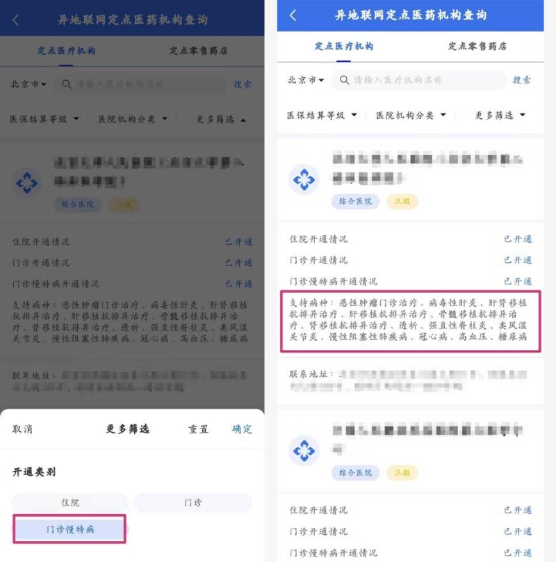 特别提示:参保地如需参保人在本人选定的门诊慢特病定点医疗机构就医的或对就医定点医疗机构有等级要求的,参保人要按照参保地相关规定执行。