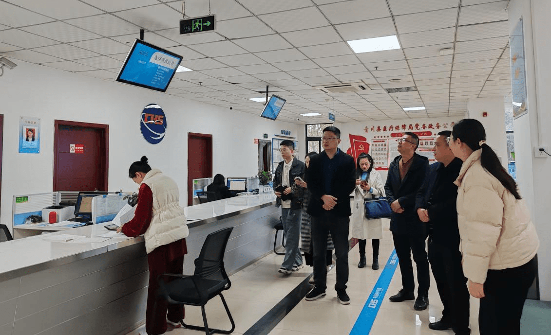 签约仪式过程中,平武县医保局潘峰一行来到青川县医疗保障经办服务大厅参观,双方就城乡居民医保参保征收、定点医药机构监管、医保经办服务体系建设等工作开展深入座谈交流。