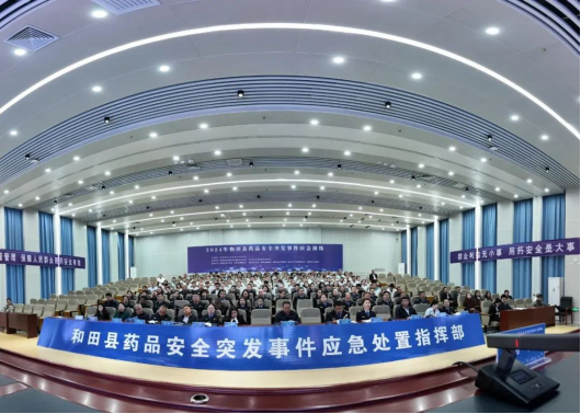 近日,和田地区市场监管局联合和田县市场监管局开展药品安全突发事件(Ⅳ级)应急演练。和田地区药监系统监管人员和医疗机构药剂科负责人现场进行观摩。