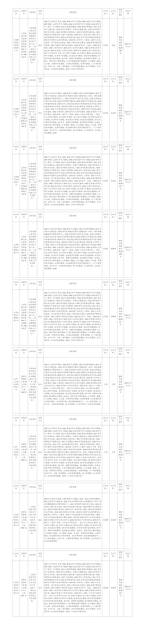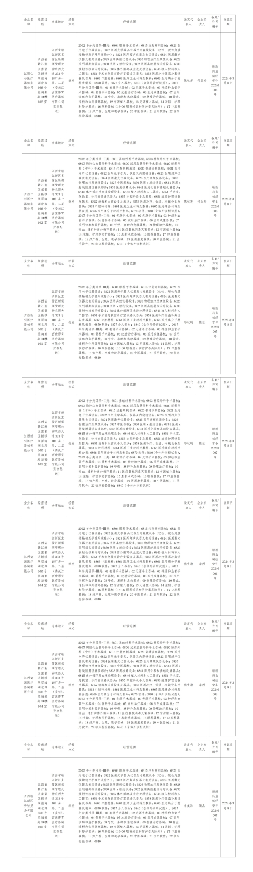 根据《医疗器械监督管理条例》和《医疗器械经营监督管理办法》的规定及有关要求,经审查合格,以下企业申请《医疗器械经营许可证》、第二类医疗器械经营备案核发业务符合有关规定,经我局同意,现将许可信息予以公示。