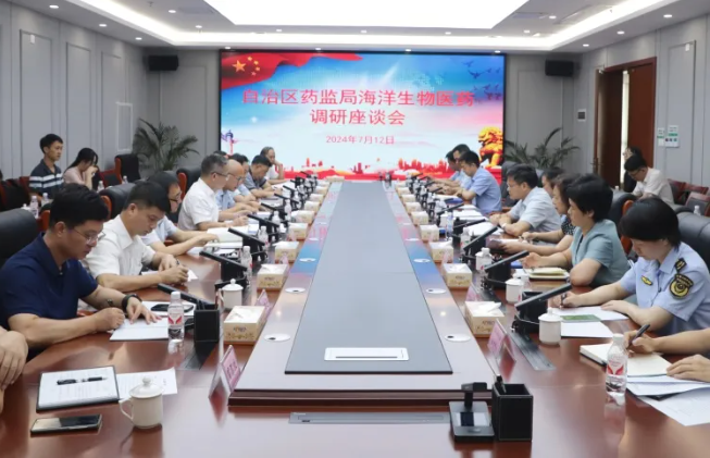 调研组还分别与钦州、北海市市场监管、卫生健康、海洋、中医药等部门召开了座谈会。黄琛强调,习近平总书记在广西考察时强调“向海图强、开放发展” ,海洋生物医药产业是我区战略性新兴产业和海洋战略性新兴产业,具有很大发展潜力和广阔前景。北部湾区域海洋资源丰富,生物种类多样,是我区发展海洋生物医药产业的最大优势和潜力所在。一是希望各方通力合作,发挥“蓝色药库”资源优势,紧抓机遇,用足用活国家和自治区、市相关支持海洋医药产业发展的政策,按照“多部门联动+高校+研究院所+领军企业+特色园区+专班推进”的模式和布局,深入探讨促进产业发展的标准体系和科技平台搭建、产学研融合发展机制,为支持和推动海洋药物研发生产提供新思路。二是加快广西海洋中药质量标准制定工作,积极开展海洋中药材、中成药系统研究,并充分发挥我区海洋科研优势,突出市场导向,深化产学研协同创新,全链条一体化布局种养殖、科技研发、技术支撑、公共服务等平台,建强人才团队,积极推进海洋生物医药的研发及中药院内制剂的创新发展。三是强化产业招商工作,支持建设海洋生物特色产业园,充分整合各方资源,深度开发珍珠等海洋资源的药用价值,延伸海洋中药、生物制品、高端医疗器械、化妆品产业链条,推动产业集群成链,为我区生物医药高质量发展注入强劲动力。