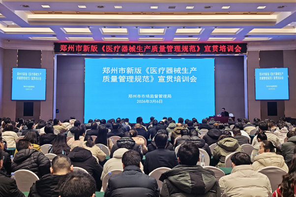 3月6日上午,郑州市市场监管局组织召开新版《医疗器械生产质量管理规范》(以下简称新版《规范》)宣贯培训会,深入学习新版《规范》的核心要义与实施要求,为迎接2026年11月1日新版《规范》全面有效实施奠定坚实基础。全市300余家医疗器械生产企业的管理者代表参加会议。