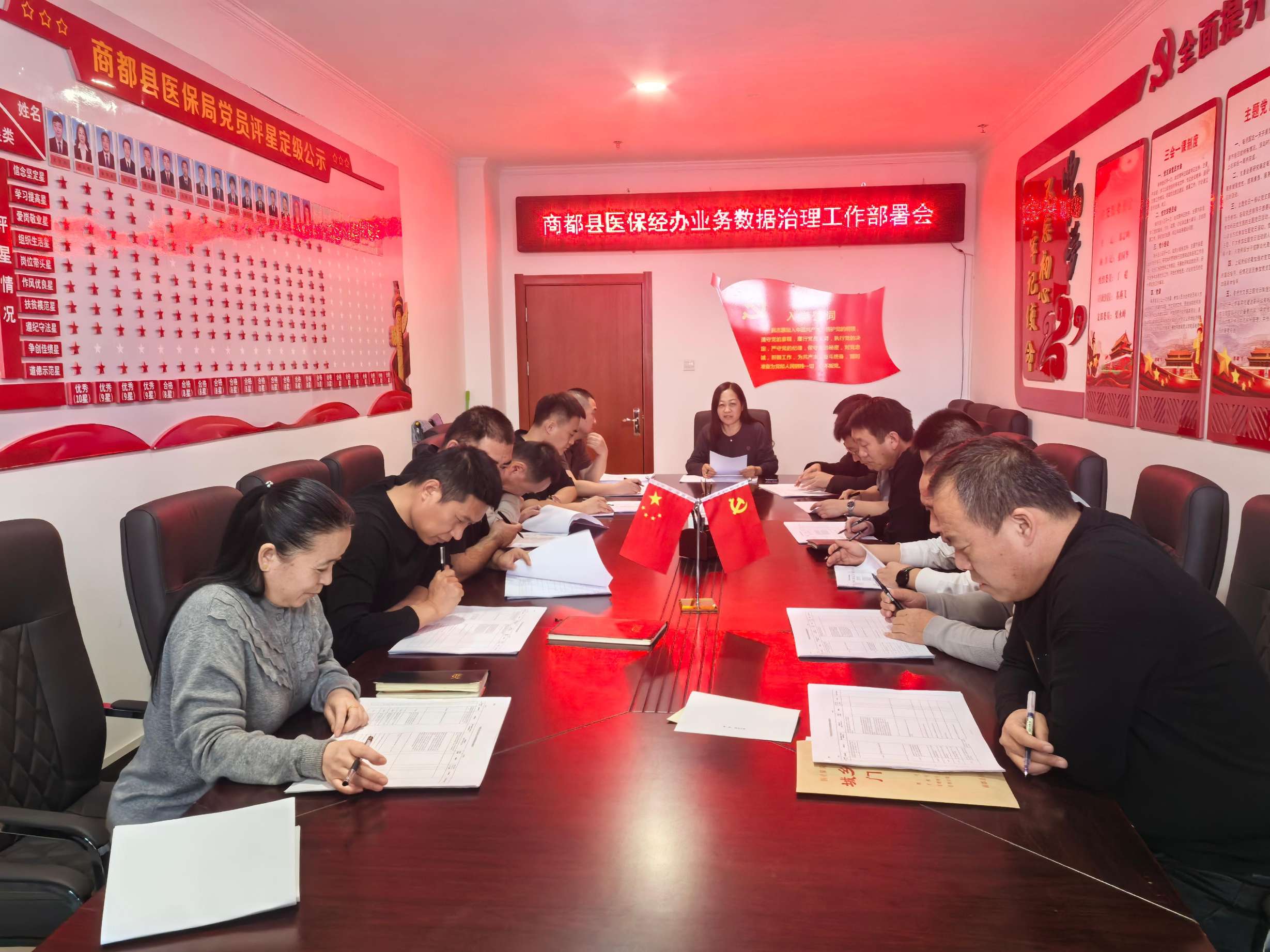 会议由医疗保障局党组成员、副局长、经办中心主任邵志峰主持,各股室长参加。
