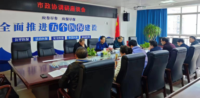 会上,调研组听取了市医保局工作开展情况汇报,并就参保征缴、基金管理、药耗集采、经办服务等方面,与市医保局相关同志进行深入探讨和交流。