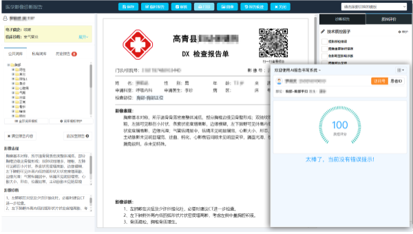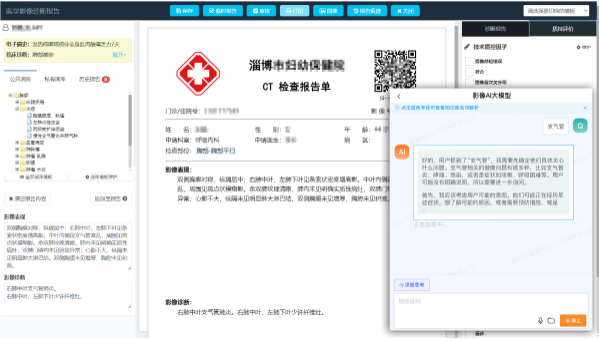 通过Deepseek大模型加持,系统通过分析患者的影像数据和健康信息,提供个性化的治疗方案,并提供初步诊断建议,有助于医疗机构规范报告管理,还能显著提升医生撰写和审核报告的效率。
