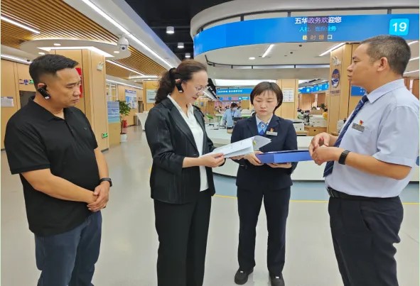 在医保服务窗口,王艳君查看了窗口设置、智能化服务设施设备情况,并以“走流程”方式体验了居民医保参保登记缴费全流程办理,查看了医保领域“高效办成一件事”落地情况,听取五华区医保局对新生儿参保、医保关系转移接续、基金监管等方面的意见建议。