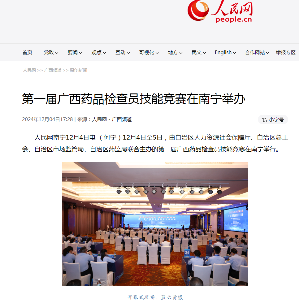 12月4日至5日,由自治区人力资源社会保障厅、自治区总工会、自治区市场监管局、自治区药监局联合主办的第一届广西药品检查员技能竞赛在南宁举行。