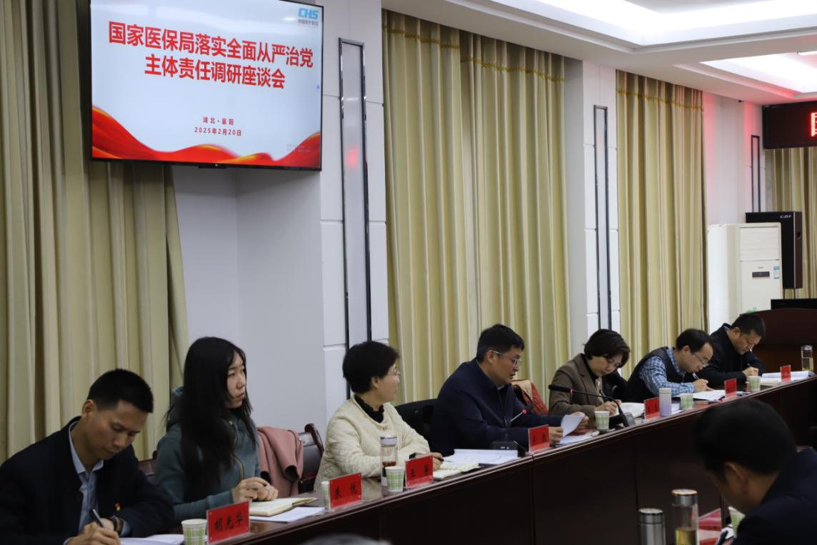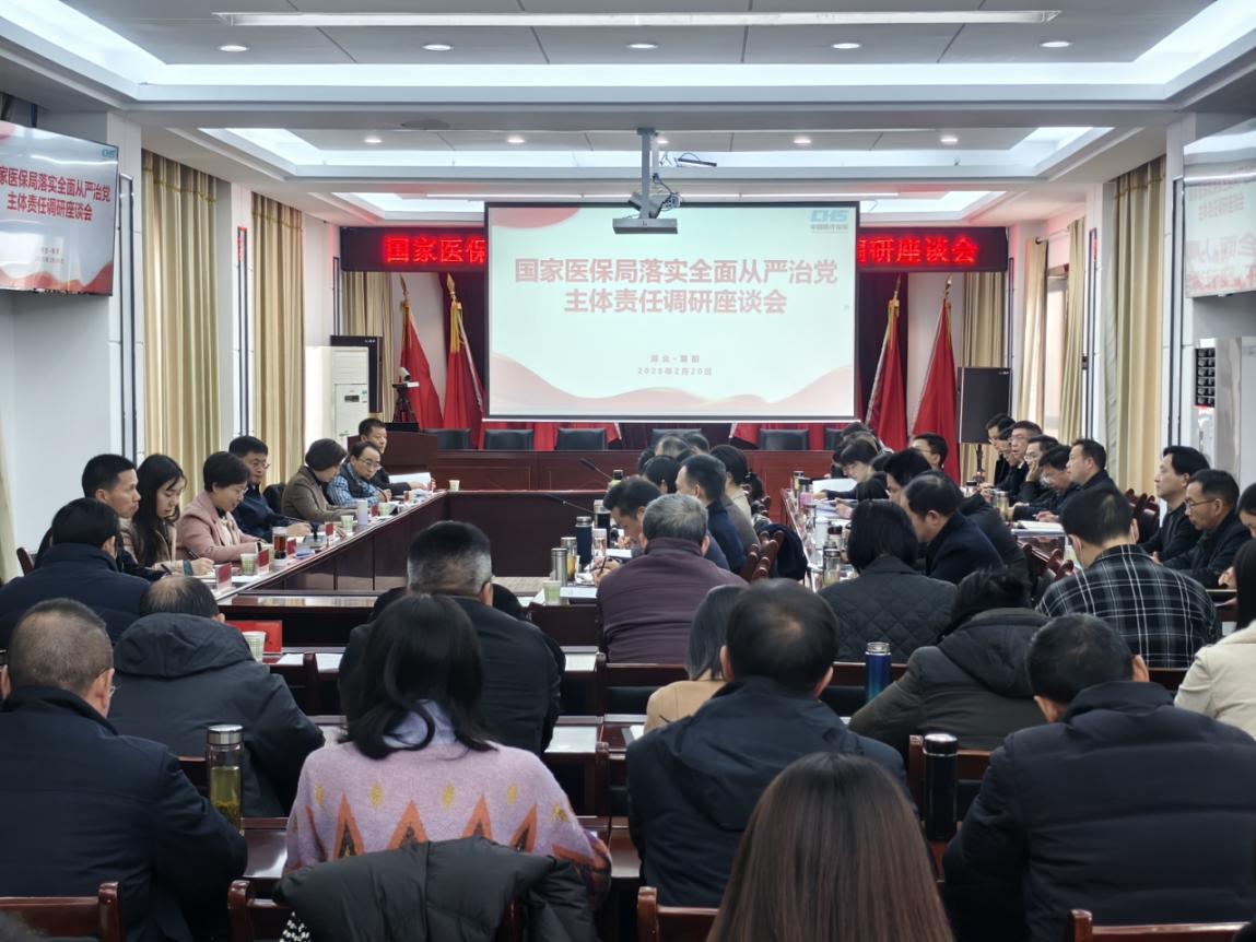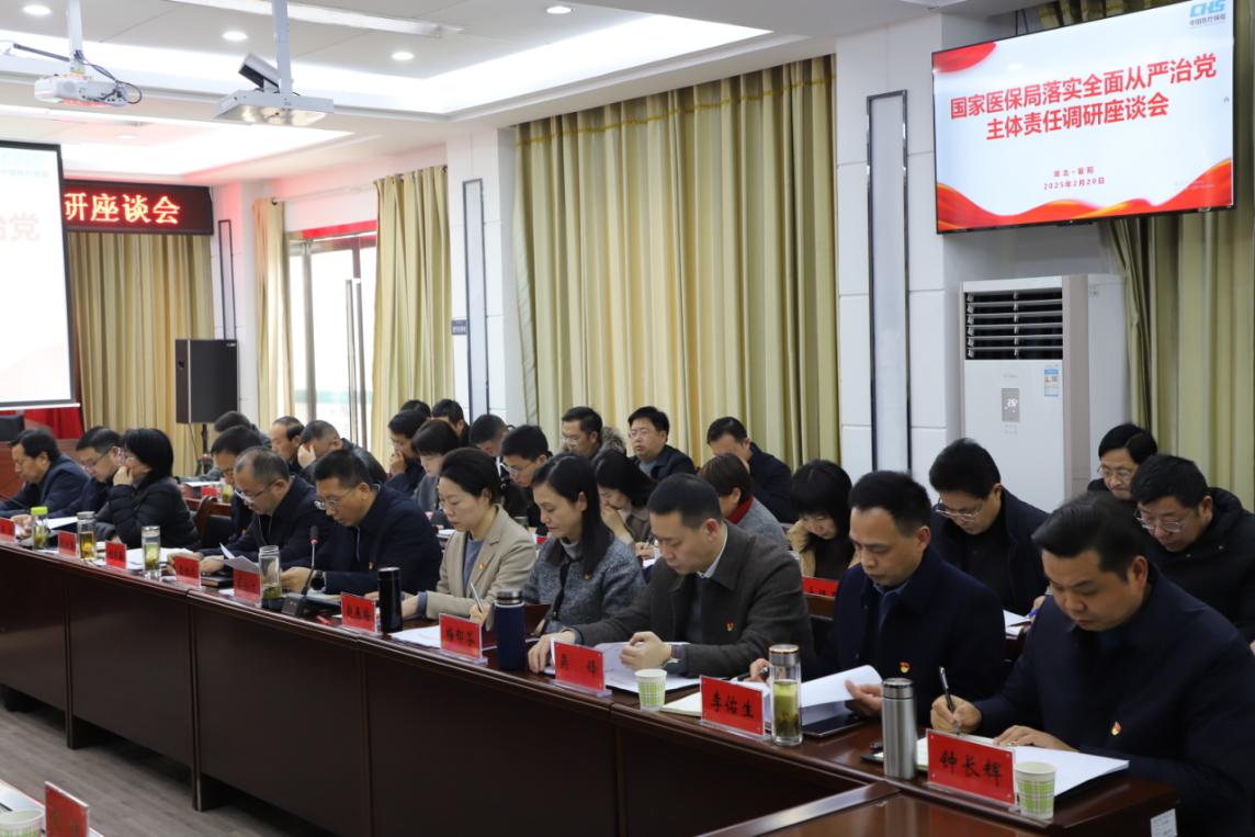 20日下午,国家医保局落实全面从严治党主体责任调研座谈会在襄阳市医保局召开,国家医保局调研组、省医保局相关领导,宜昌、十堰、孝感、随州等地医保部门及部分县(市、区)经办机构主要负责同志,襄阳及下辖各县区医保局、医保经办机构主要负责同志参会,交流医保系统落实全面从严治党主体责任工作。省医疗保障局党组成员、副局长王玉主持会议,襄阳市政府副市长王芳出席会议并致欢迎词。